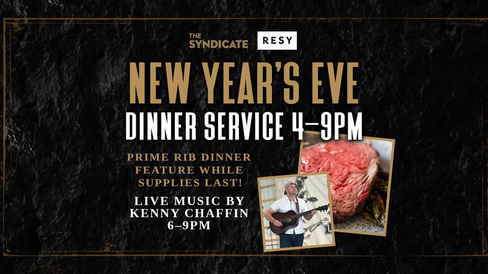 We’re ringing in the New Year with a special dinner and live music! Join us on Wednesday, December 31st as Kenny Chaffin performs from 6–9 PM. We’ll be featuring our Prime Rib dinner with a loaded baked potato, horseradish sauce, and au jus for $52 while supplies last. A perfect way to celebrate the last night of the year.